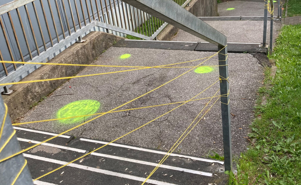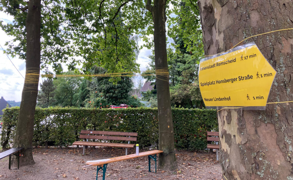 Die Öffentlichkeit war dazu eingeladen, während verschiedener Veranstaltungen im August und September 2023 Ihre Ideen für die Standorte einzubringen. Zuvor wurde durch Interventionen im Stadtraum, mit gelber Farbe, Fäden, Hinweisschildern und Plakaten, visuell auf das Projekt und die Standorte aufmerksam gemacht. Die Pausenpunkte und der Fußweg in die Innenstadt konnten zudem während eines gemeinsamen Spaziergangs in die Innenstadt erlebt werden.